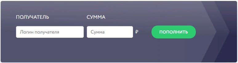 Дополнительная вкладка «Переводы» — отправляйте другим игрокам деньги. В форме укажите логин получателя и сумму транзакции в рублях. Нажмите на «Пополнить» — в течение нескольких минут оппоненту поступят средства.