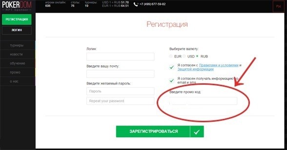 Указывать промокод при регистрации на Pokerdom настоятельно рекомендуется, ведь это дает некий набор бонус и приятных особенностей, позволяющих в дальнейшем иметь те преимущества, которых не будет у остальных пользователей. Будьте внимательны, когда выбираете конкретный код и читайте все условия.